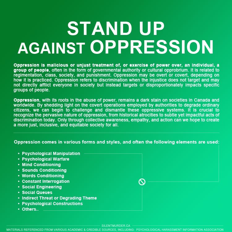 Silent oppression goes beyond unlawful acts; it violates human rights, the Bill of Rights, and the Charter of Rights and Freedoms.